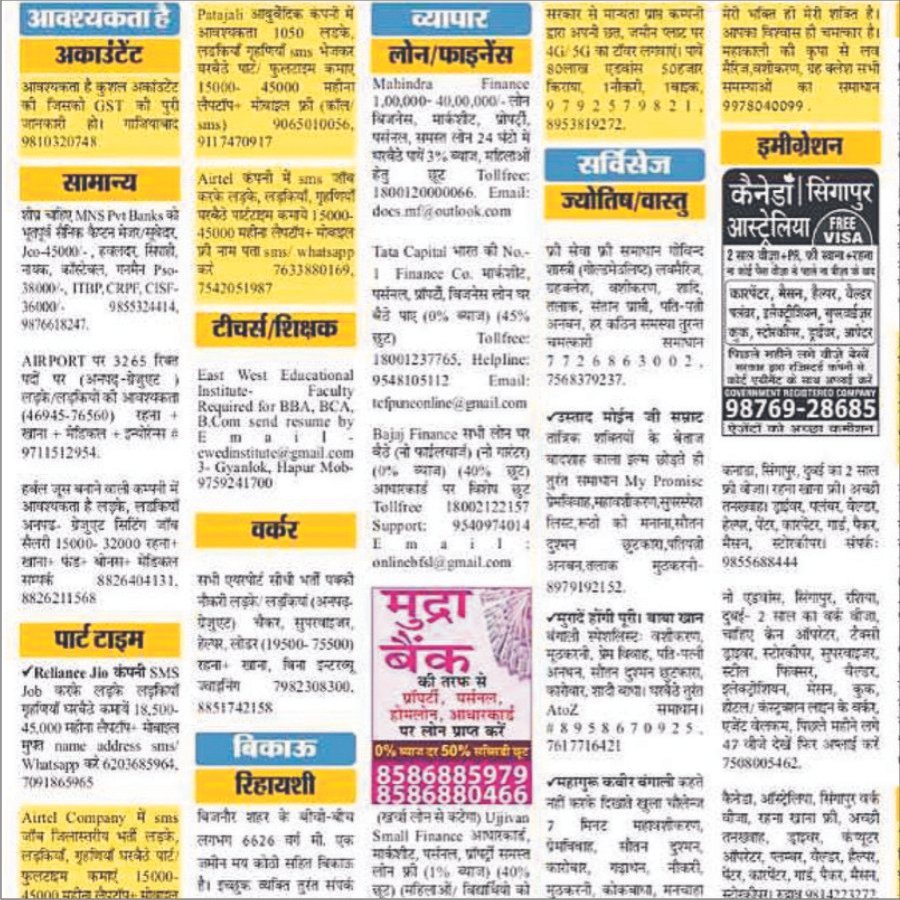 We regularly handle: Classified text advertisements (requirement, property, services etc.), Matrimonial advertisements, Obituary & remembrance notices, Classified display ads (box ads in classified section). For Bareilly local clients, we also manage Medical Helpline and Education Helpline advertisements for hospitals, clinics, schools and institutes in leading Hindi newspapers.